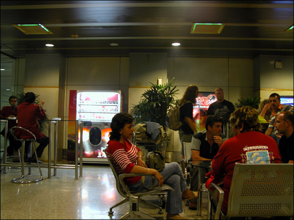 喫煙室も旅人で一杯。