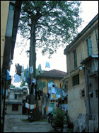 路地の奥には民家が。