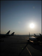 朝の空港も、すんごい綺麗だ。