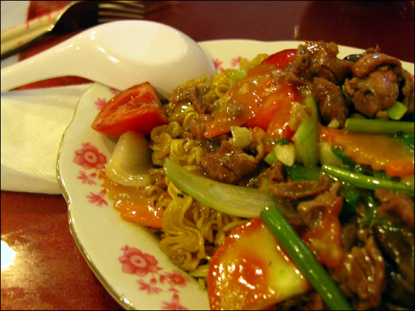 炒め物を食べる。そこそこ、おいしかった。