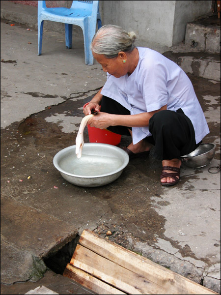 鳥を剥ぐおばあちゃん。